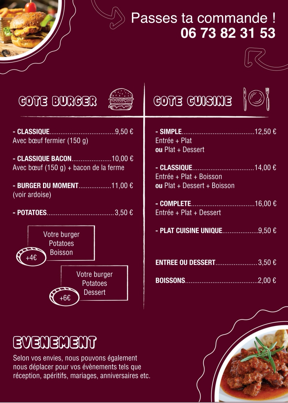 Gilles vous accueille devant la salle polyvalente le vendredi à compter de 18h. Réservations au 06 43 10 51 97.