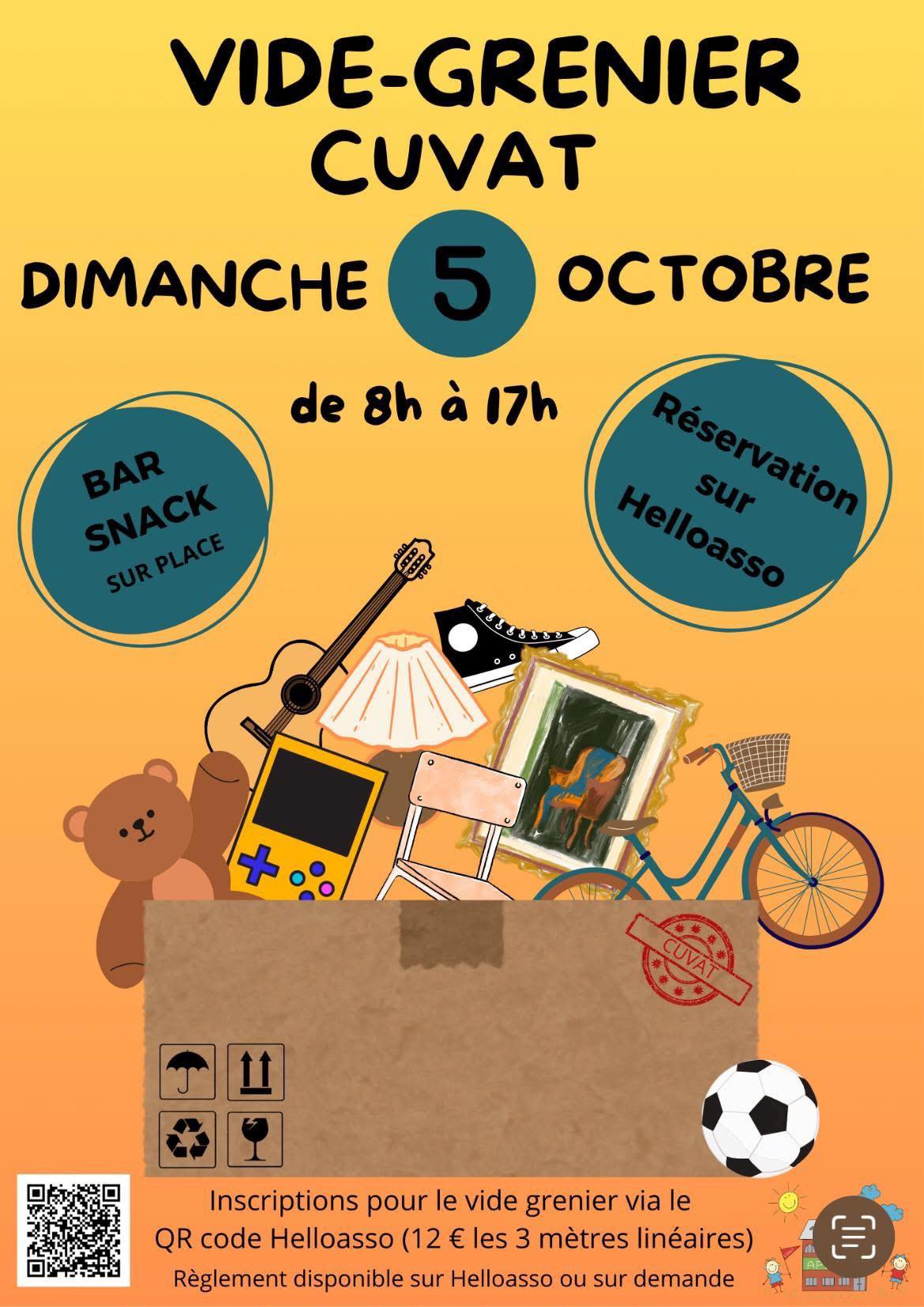 Si vous souhaitez vous inscrire, voici le lien HelloAsso : https://www.helloasso.com/associations/ape-cuvat/evenements/vide-grenier-05-10-2025